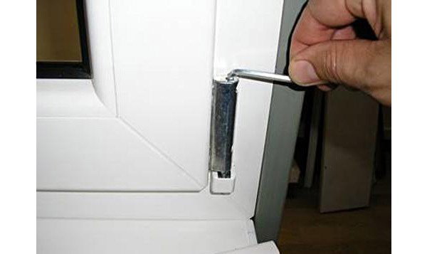 Cледует смазать все подвижные элементы проникающей смазкой, но, если это не помогло, следует отрегулировать петли с использованием шестигранника, открыв створку под прямым углом к раме. Найдя регулировочный винт верхней петли, проворачиваем его шестигранником. Регулируя нижнюю петлю, также следует найти винты, изменяющие положение ручки.