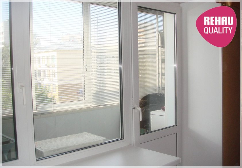 - Конструктивно окно с дверью на балкон может быть из любого профиля Rehau: Blitz, Euro, Estet, Sib, Delight, Brillant, Geneo или Edinburgh. При выборе учитываются параметры помещения, например, если комната темная, и вы хотите увеличить светопропускную способность окон, то можно остановиться на Rehau Delight. Или, к примеру, если балкон не остеклен, и вам нужно сделать комнату максимально теплой (детскую, спальню), то для комбинированной оконной конструкции подойдет профиль Rehau Sib.