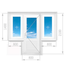 Здесь показаны самые простые схемы остекления, на практике комбинированные балконные двери могут иметь конфигурацию любой сложности: двух- и трехстворчатые окна в составе блока, двухстворчатые двери, горизонтальные и вертикальные импосты в случаях с нестандартно большими проемами и пр.