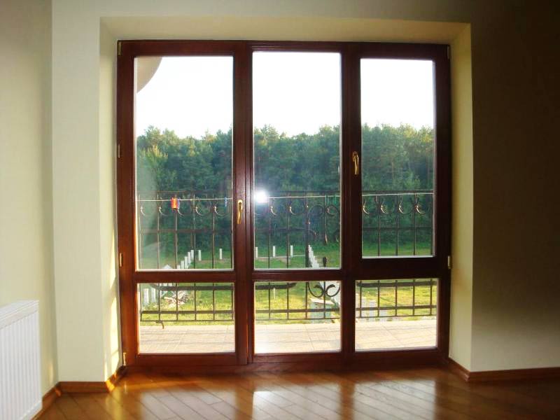 Балконная дверь из пластика может быть любого цвета по шкале RAL, иметь декоративную раскладку на прозрачной части или текстуру под дерево за счет ламинации: