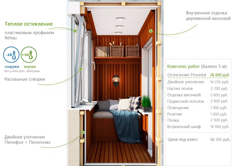 | Остекление деревом | 17 000 руб./м2 | С монтажом |