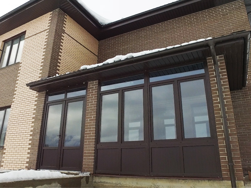 - Заполнение створок: стекла, сэндвич-панелей, пластиковая вагонка