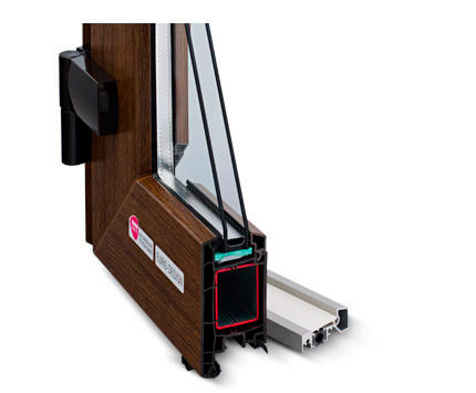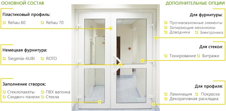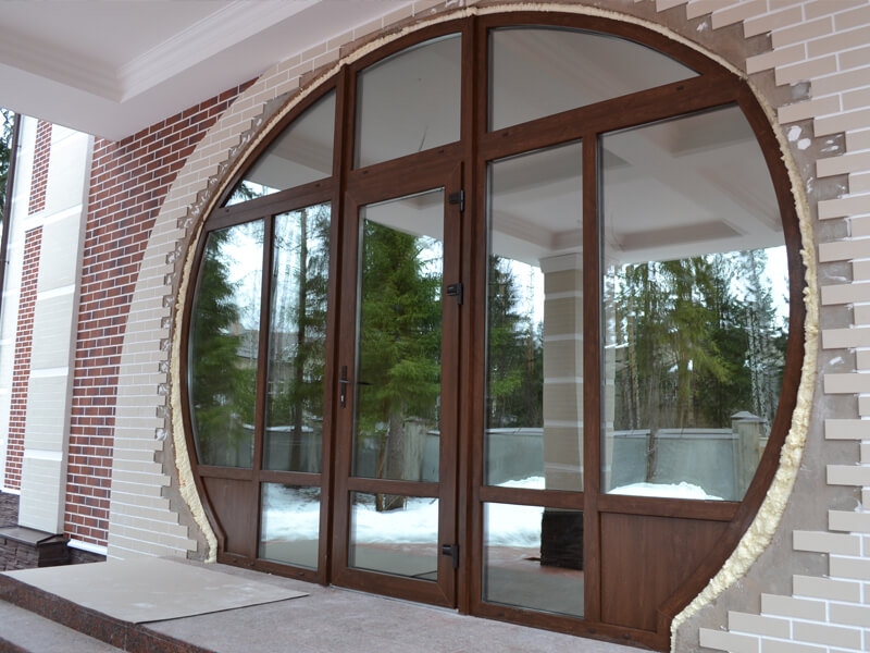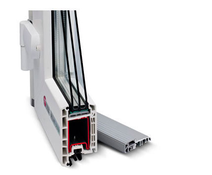 В производстве входных групп из ПВХ мы используем систему профилей Rehau