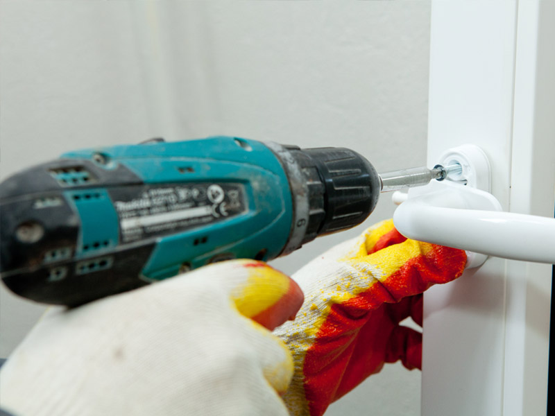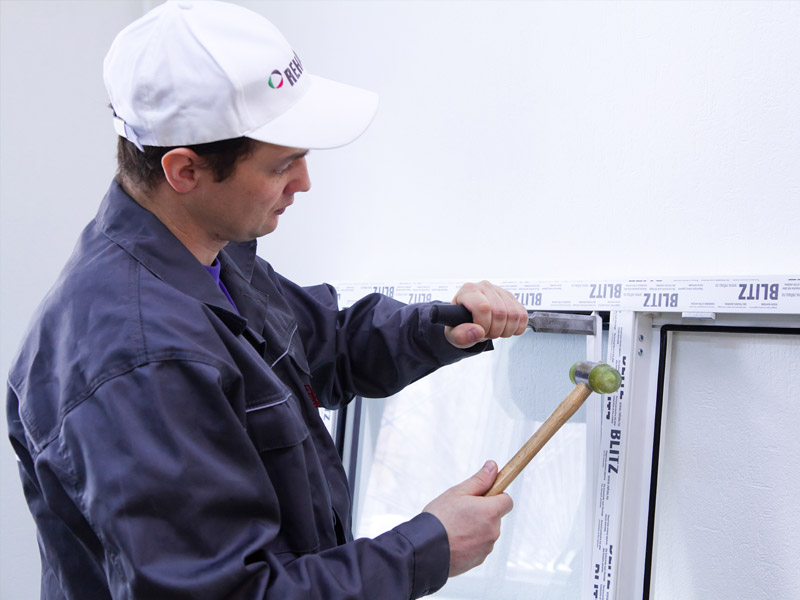 После отлива на зафиксированную в проеме раму навешиваются створки и устанавливаются предварительно снятые с нее стеклопакеты. Фурнитура тщательно регулируется еще в сборочном цеху на специальном стенде, но если монтажник видит, что необходима дополнительная регулировка, то на этом этапе он ее делает.