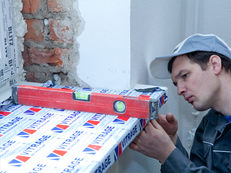 Перед установкой с нового окна обязательно необходимо снять защитную пленку, а с рамы - убрать створки, чтобы их не повредить. Рама без створок устанавливается в проем на опорные колодки и выравнивается строго по уровню. Затем окно фиксируется в проеме при помощи крепежных элементов (саморезов и анкеров), а зазоры заполняются монтажной пеной.