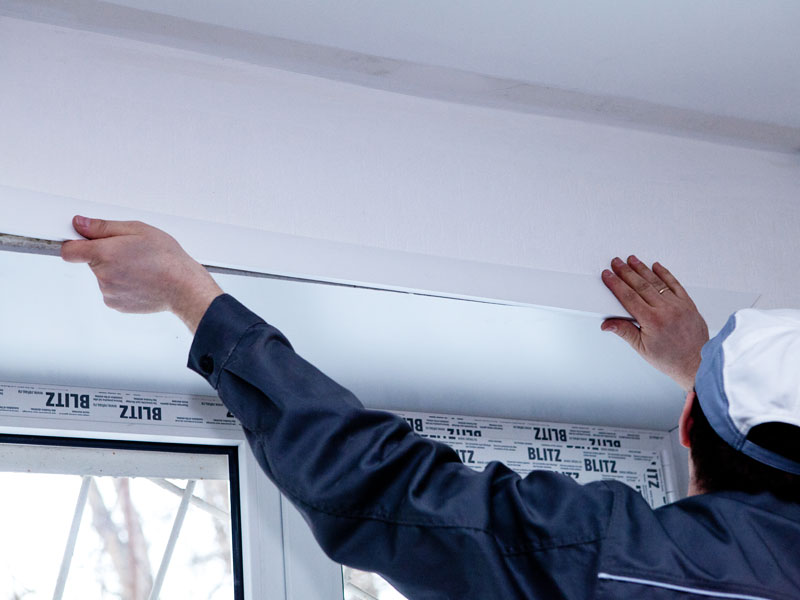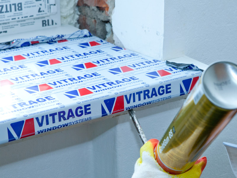 Подоконник устанавливается на опорные колодки и фиксируется на подстановочном профиле при помощи крепежных элементов. Зазор под подоконником запенивается.